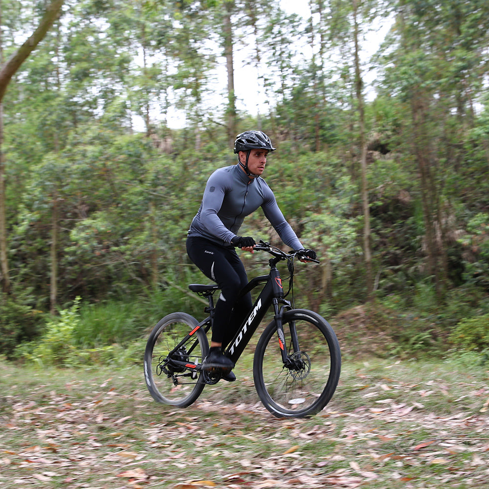 Unleash your adventure with the Totem Volcano Electric Mountain Bike, designed for power, endurance, and ultimate control. Featuring a 500W motor and a 48V 11.6Ah battery, this rugged e-bike delivers up to 50 miles of range, perfect for conquering challenging trails or long off-road rides. Its lightweight aluminum frame, 21-speed Shimano gearing, and advanced suspension fork ensure smooth handling and comfort across rough terrain. Whether you're exploring mountain paths or tackling steep climbs, the Volcano is built to elevate your ride.